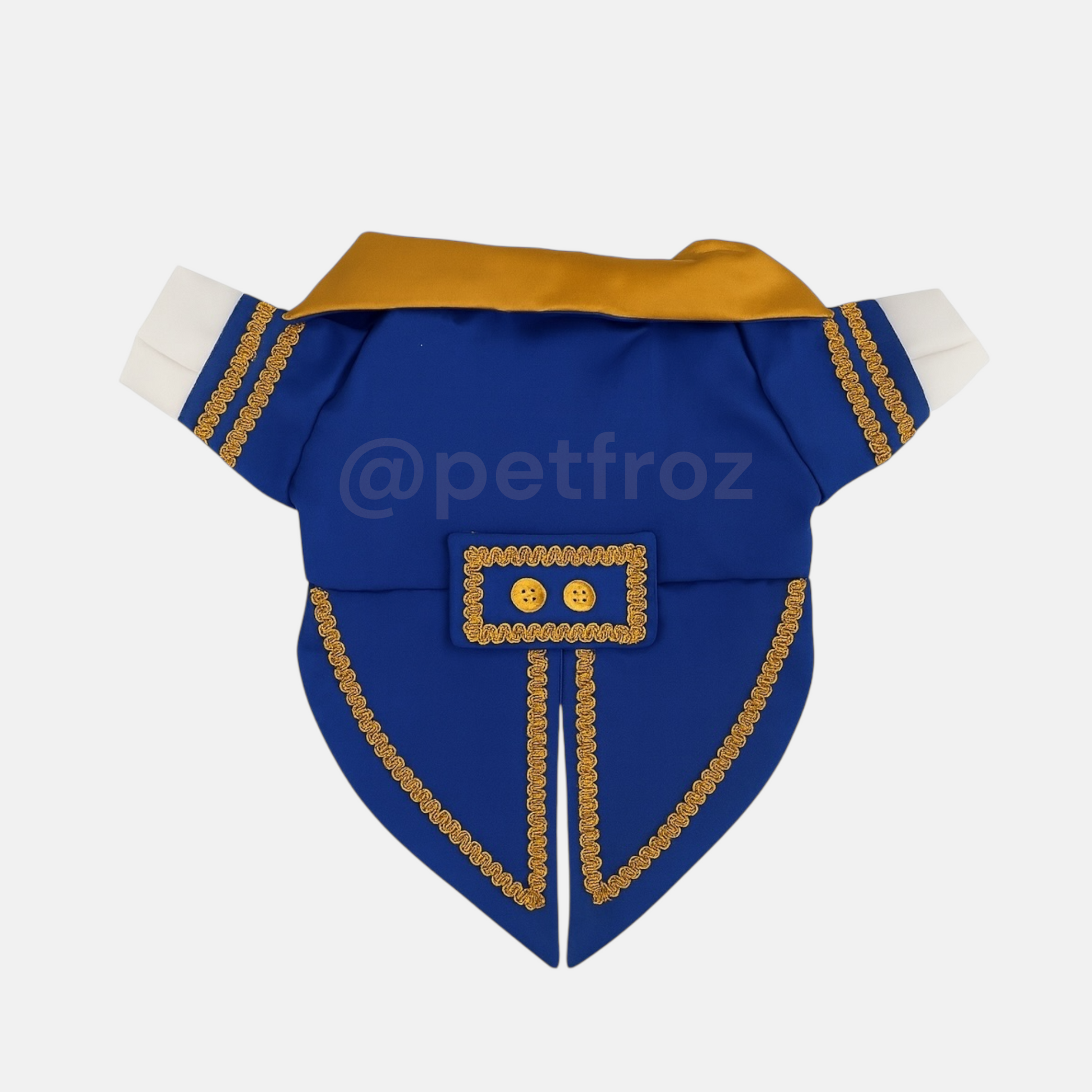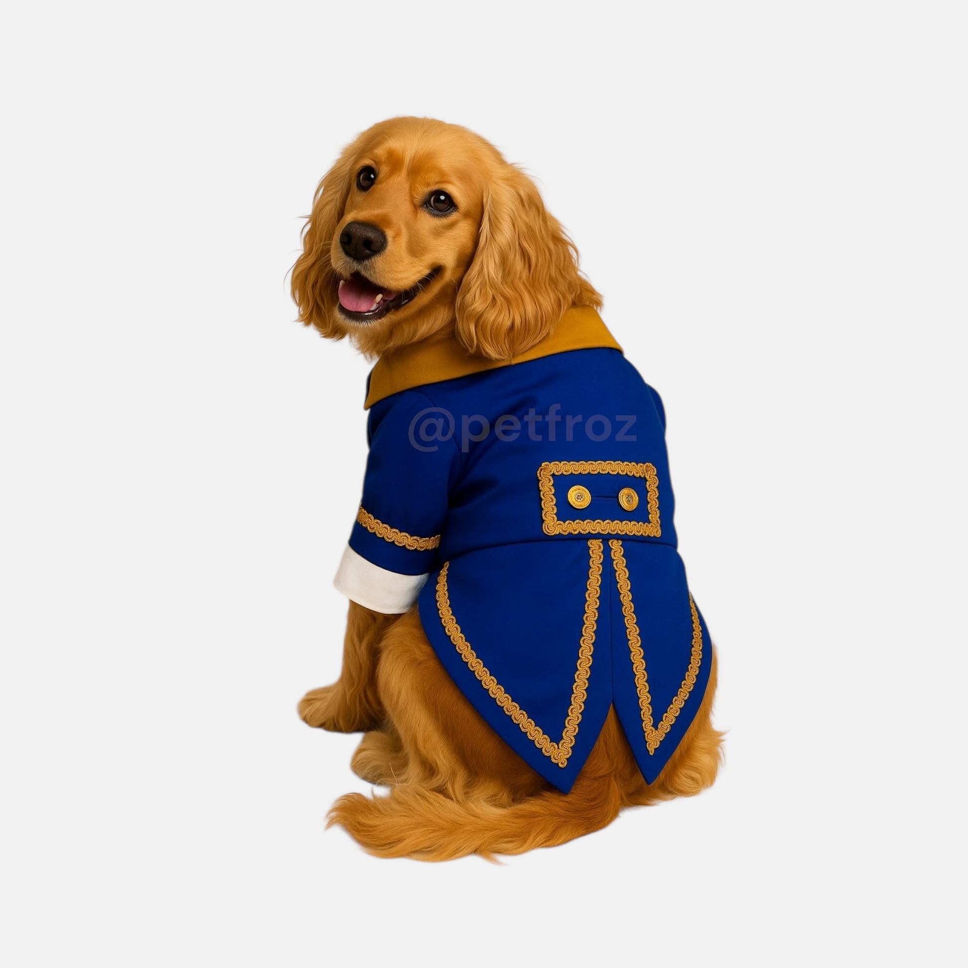 Convierte a tu peludo en todo un prÃncipe con este elegante traje azul con detalles dorados. Inspirado en ''The Beast'', de ''Beauty and the Beast'' combina estilo y comodidad gracias a su tela suave y ligera. Perfecto para sesiones de fotos, eventos especiales o simplemente para robar miradas en cada paseo. 👑